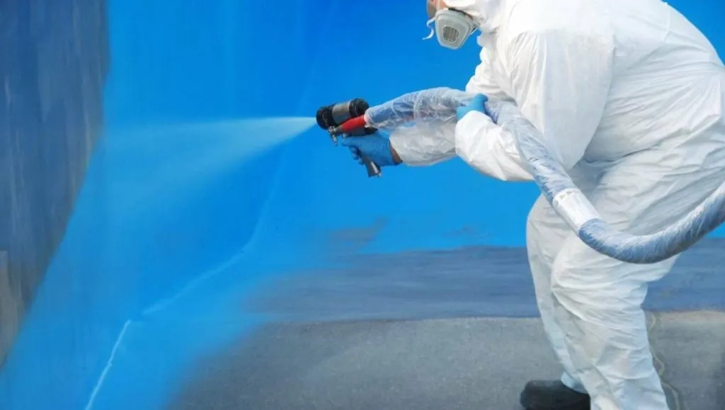 تطبيق المادة العازلة: يتم تطبيق المادة العازلة (مثل الإيبوكسي أو البوليمر أو البيتومين) على الجدران والأسطح الداخلية والخارجية للخزان. يجب تطبيق عدة طبقات حسب الحاجة لضمان الحصول على عزل محكم وفعّال.